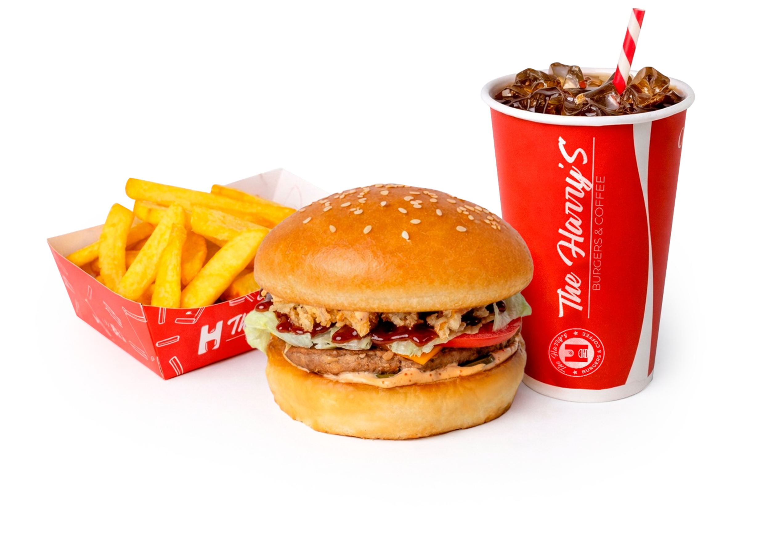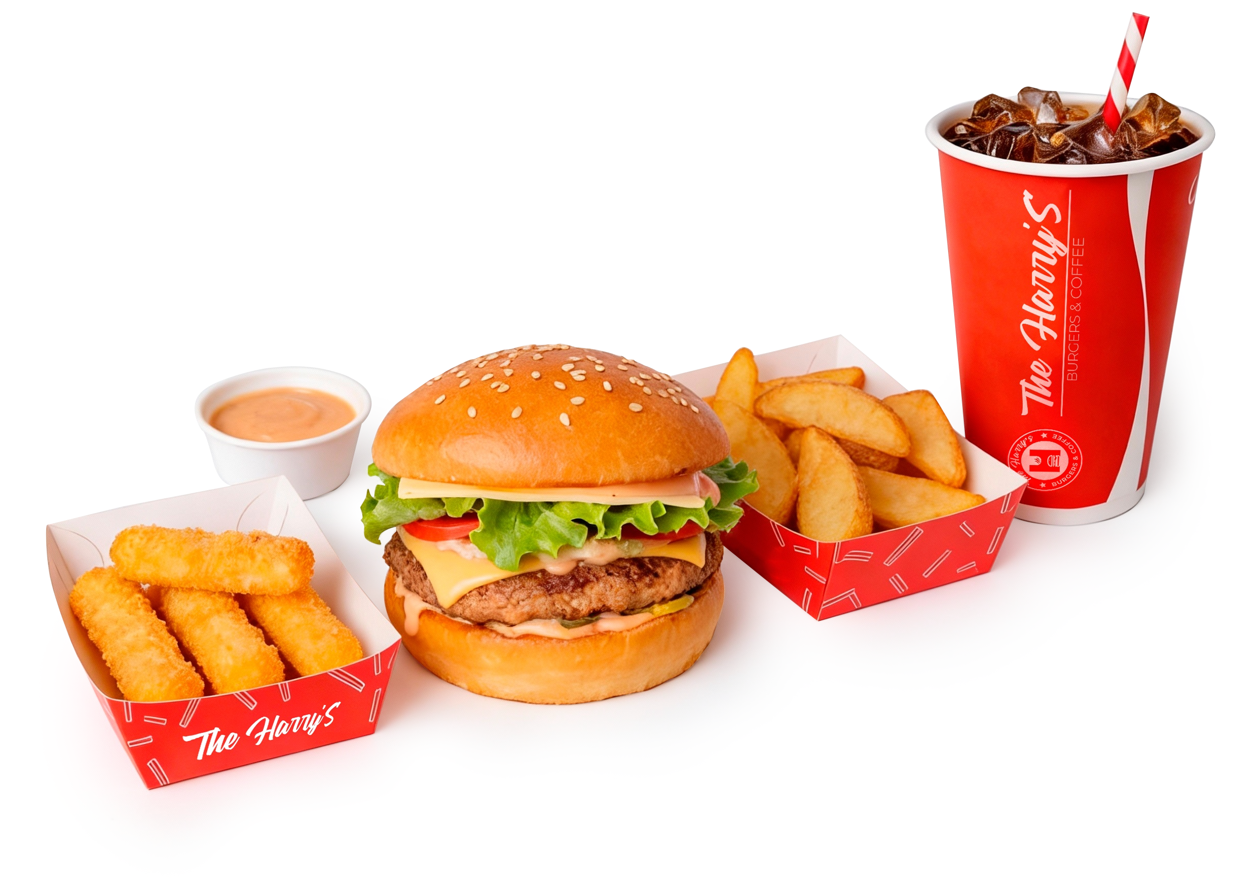 Сытный бургер Хэррис c сочной котлетой, свежими овощами и фирменным соусом, хрустящий золотистый картофель фри и освежающая Cola 0,5 л. Идеальный набор для полноценного обеда или быстрого перекуса — вкусно, сытно и без лишнего.