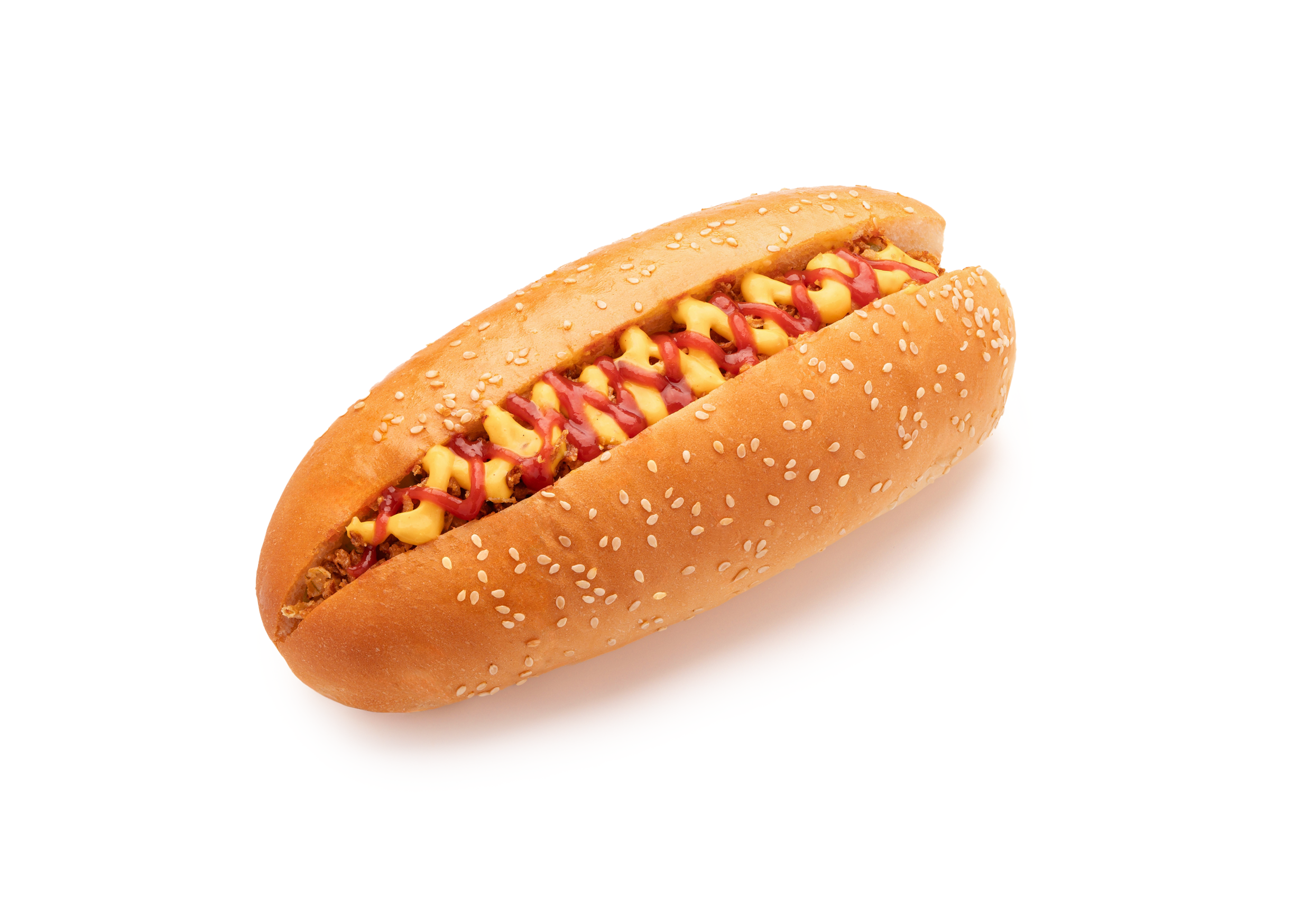 Сочная куриная сосиска в мягкой булочке. Майонез и кетчуп придают пикантность, а свежий огурец и помидор добавляют лёгкость. Красный лук вносит пикантные нотки, а горчица придаёт характерный вкус BBQ