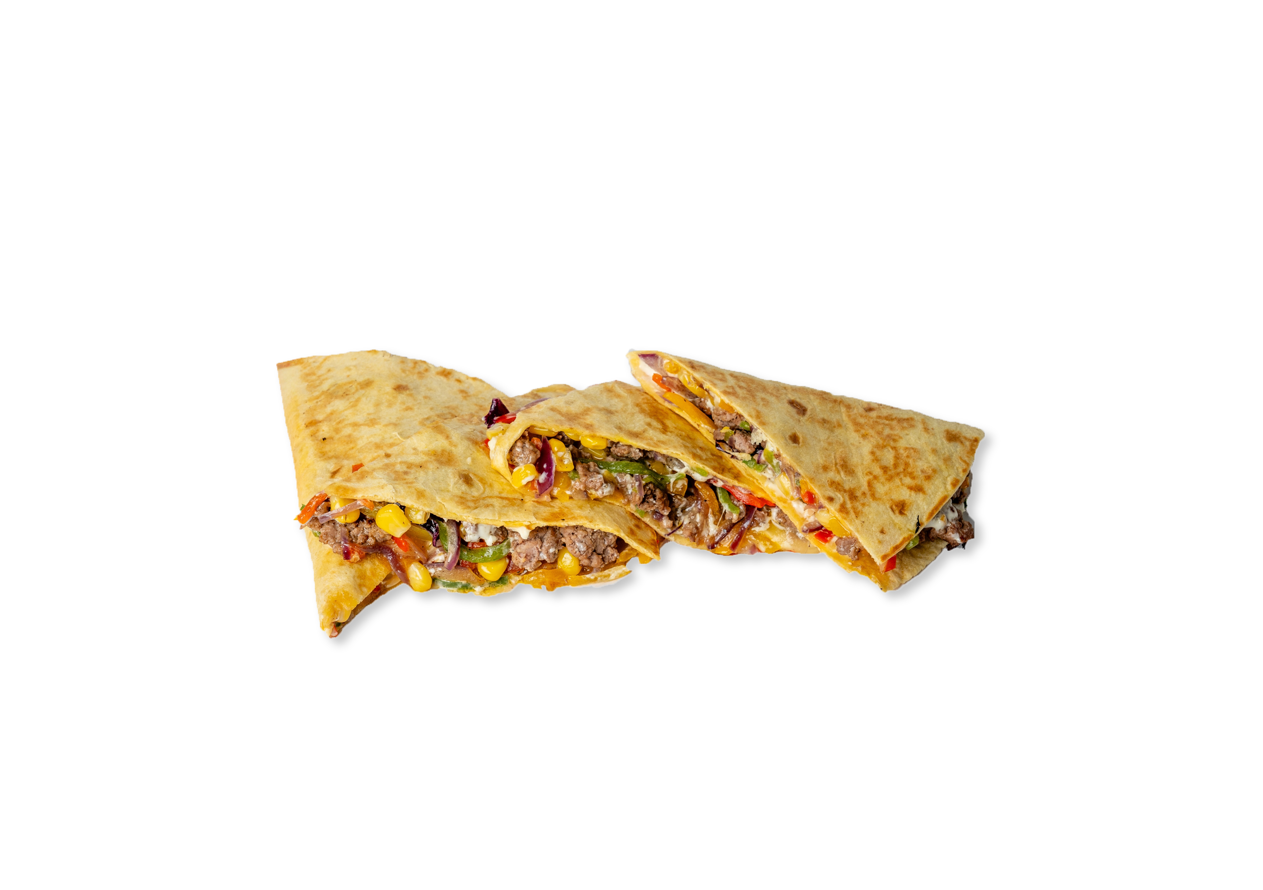 Сытная кесадилья c нежной телятиной, тягучим расплавленным сыром и сочными овощами, обжаренная до золотистой корочки. Удобный формат и насыщенный вкус.