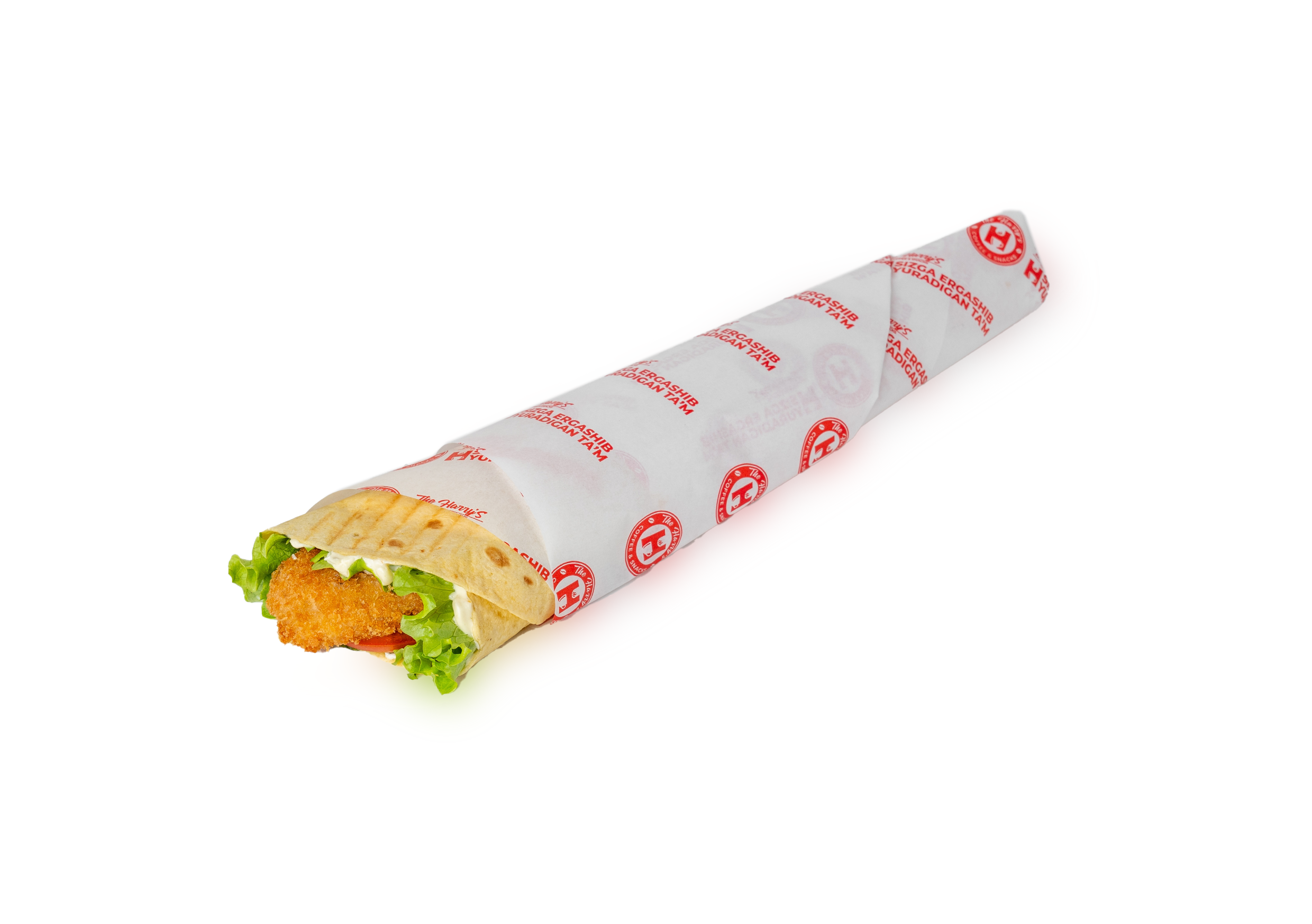 Сочная куриная вырезка в хрустящей панировке в лаваше. Внутри — свежие овощи: салат и помидор, а также пикантный халапеньо. Майонез и кетчуп придают пикантность. Блюдо сочетает в себе лёгкость и остроту