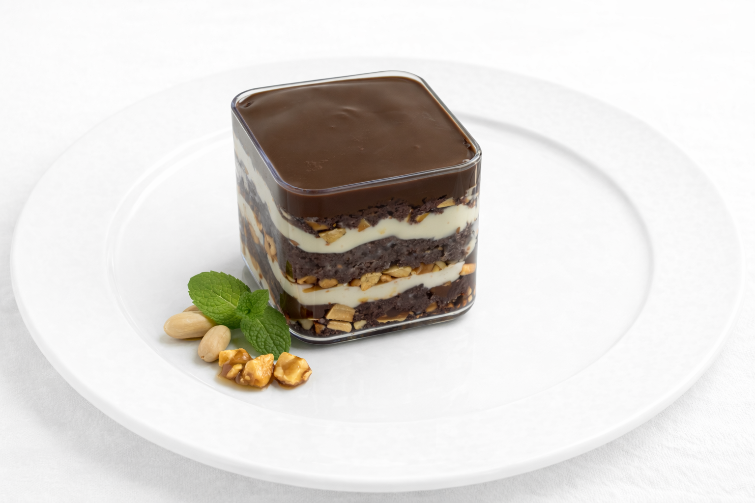 Слоёный шоколадный трайфл c кремом, карамелью и хрустящим арахисом. Насыщенный вкус в удобном формате стакана.